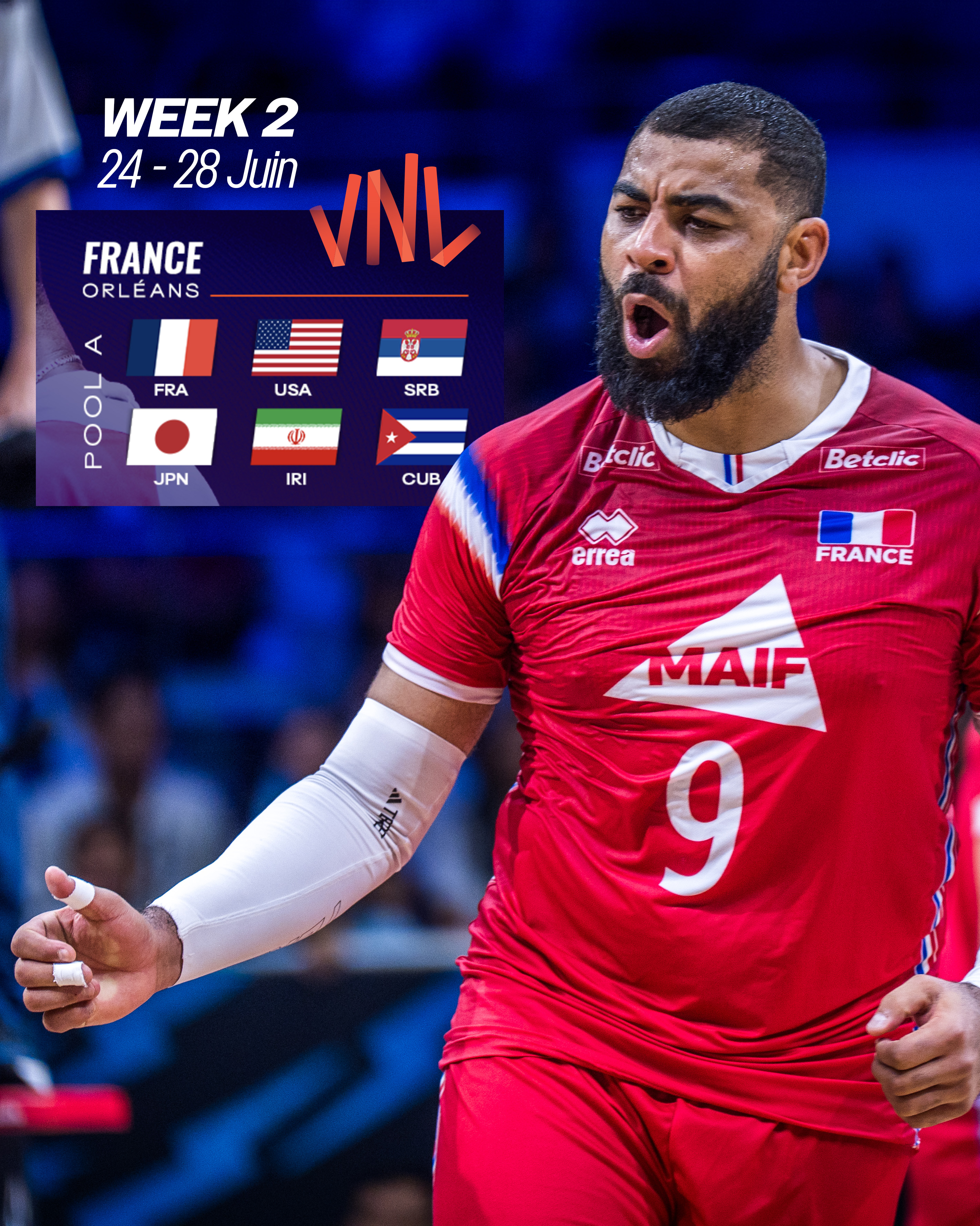 Cette année, la Volleyball Nations League (VNL) aura lieu entre le 10 juin et le 2 août 2026. Après une première édition réussie en 2023, la VNL revient pour une étape à Orléans du 24 au 28 juin 2026 ! La poule est constituée des délégations suivantes : Cuba, France, Iran, Japon, Serbie et USA.