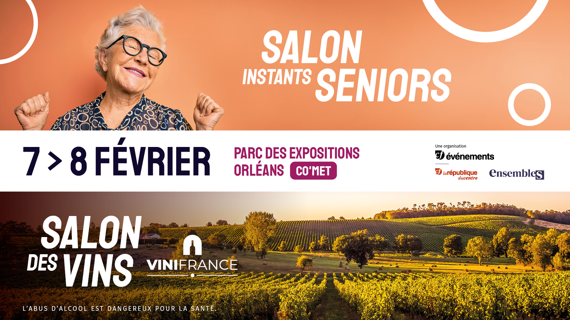 Plus d'informations : https://www.salon-instants-seniors.fr/ ou https://www.salon-vinifrance.fr/les-salons/orleans/