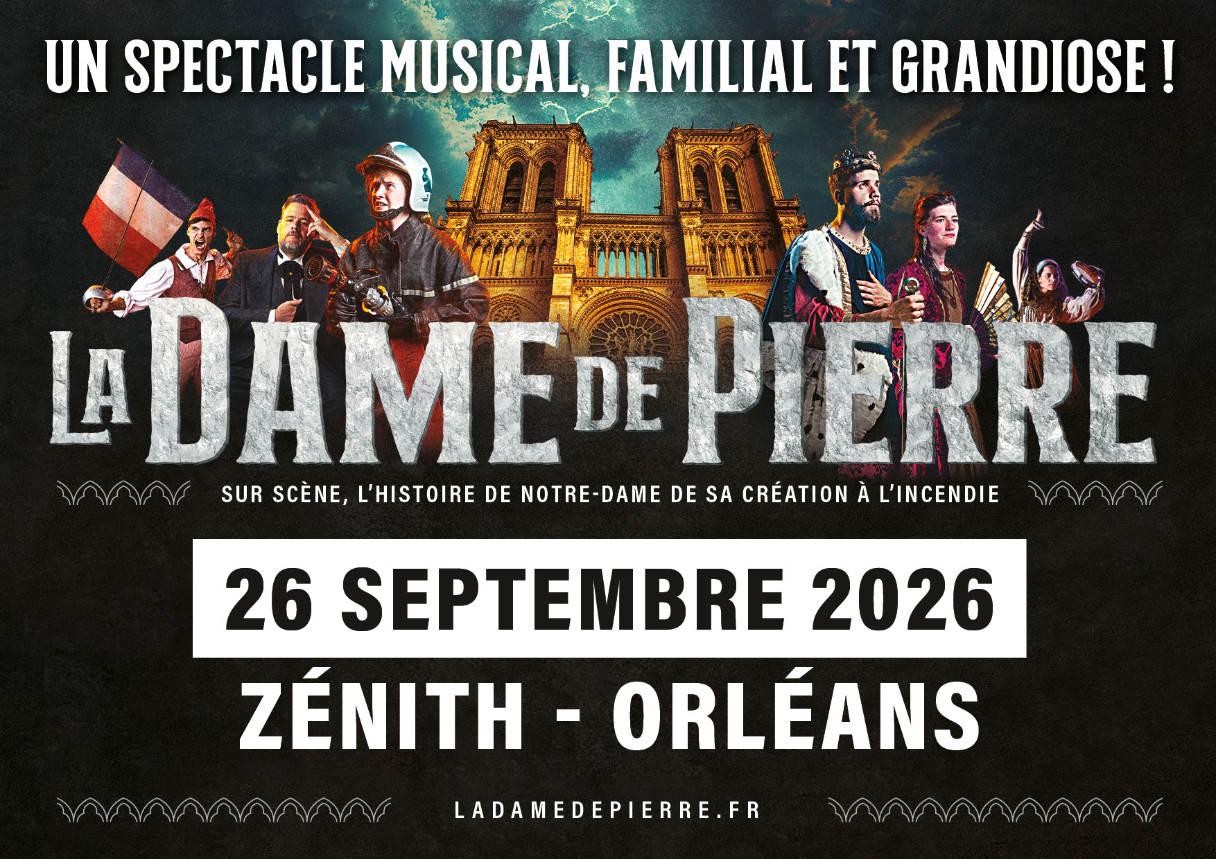 La Dame de Pierre vous raconte l’histoire derrière la légende. Cette fresque historique hors du commun traverse les siècles, de la construction de Notre-Dame jusqu’à nos jours. Maurice de Sully, Louis XIII, Victor Hugo, Viollet-le-Duc... Partez à la rencontre des bâtisseurs de cathédrales qui ont fait de Notre-Dame de Paris un symbole incontournable du pays. Un spectacle poétique et familial, à vivre sur les plus grandes scènes de France.